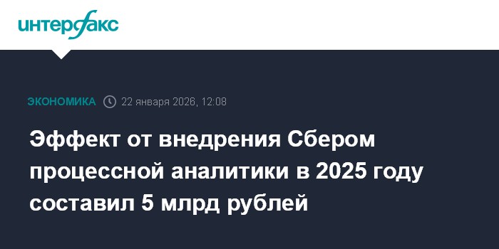 Эффект от внедрения Сбером процессной аналитики в 2025 году составил 5 млрд рублей