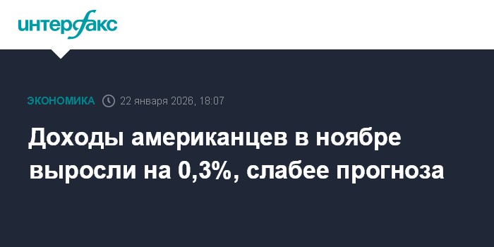 Москва. 22 января. INTERFAX.RU - Доходы населения США в ноябре выросли на 0,3% по сравнению с предыдущим месяцем, сообщается в отчете министерства торговли.