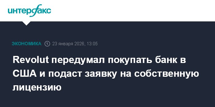 Москва. 23 января. INTERFAX.RU - Финтех-стартап Revolut отказался от планов покупки банка в США и намерен подать заявку на получение банковской лицензии в этой стране, пишет Financial Times.