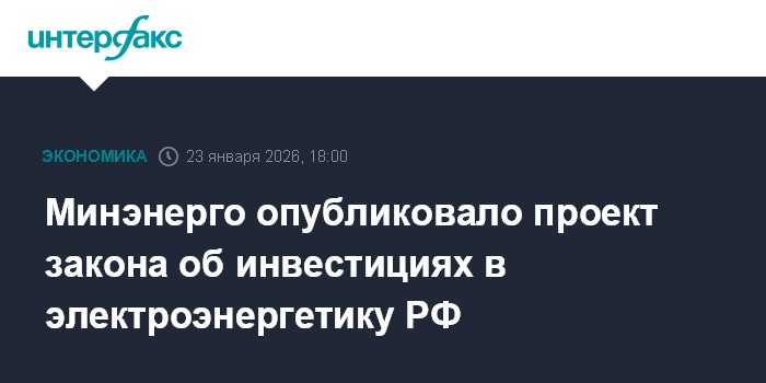 Москва. 23 января. INTERFAX.RU - Минэнерго РФ опубликовало проект представленного ранее на РЭН-2025 федерального закона "О содействии инфраструктурному развитию и повышению эффективности управления в сфере электроэнергетики". Текст проекта размещен на сайте regulation.gov.