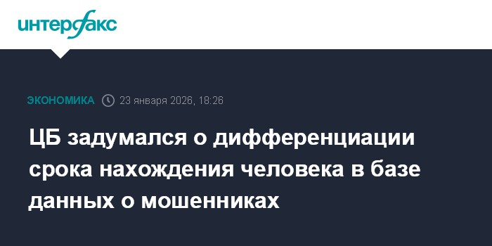 Москва. 23 января. INTERFAX.RU - Банк России работает над внедрением подхода, при котором срок нахождения человека в базе данных ЦБ о мошенниках будет зависеть от количества его "проступков", сообщила пресс-служба регулятора в официальном телеграм-канале.
