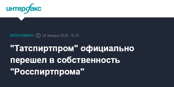 Как сообщается в ЕГРЮЛ, "Татспиртпром" с 23 января 2026 года официально перешел в собственность "Росспиртпрома". Одобрение ФАС на проведение этой сделки "Росспиртпром" получил в конце декабря 2025 года.