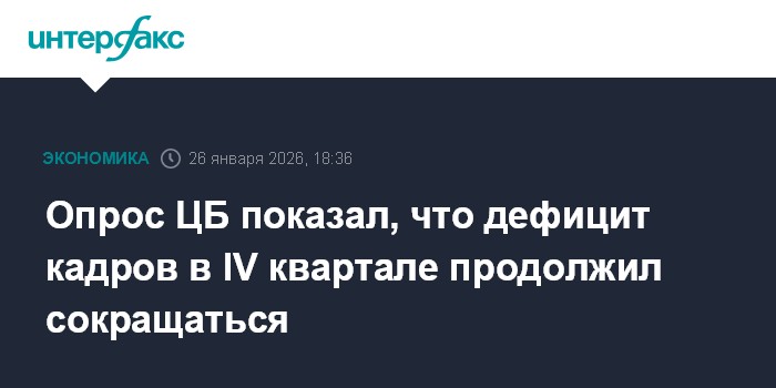 Москва. 26 января. INTERFAX.RU - Дефицит кадров в российской экономике в четвертом квартале 2025 года продолжал постепенно сокращаться, однако обеспеченность работниками все еще остается крайне низкой по сравнению с периодом до 2022 года. Таковы итоги регулярного опроса предприятий, проводимого ЦБ РФ.