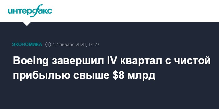 Москва. 27 января. INTERFAX.RU - Американский концерн Boeing Co., один из крупнейших мировых производителей авиационной, космической и военной техники, в четвертом квартале 2025 года нарастил выручку в 1,6 раза и завершил период с внушительной прибылью благодаря продаже части активов Digital Aviation Solutions.