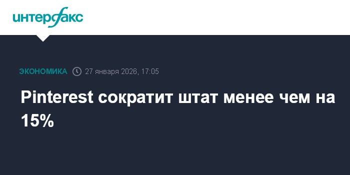 Москва. 27 января. INTERFAX.RU - Американская Pinterest Inc., владеющая популярным интернет-сервисом визуальных закладок, намерена сократить офисные площади и менее 15% штата, говорится в сообщении компании на сайте Комиссии по ценным бумагам и биржам (SEC) США.