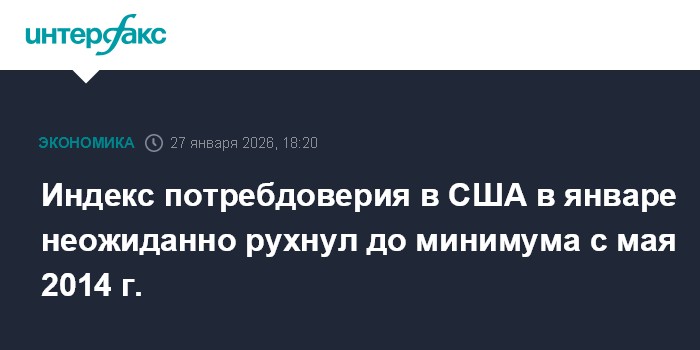 Индекс потребдоверия в США в январе неожиданно рухнул до минимума с мая 2014 г.