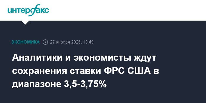 Москва. 27 января. INTERFAX.RU - Федеральная резервная система США на заседании, которое завершится 28 января, сохранит процентную ставку по федеральным кредитным средствам (federal funds rate) в диапазоне 3,5-3,75% годовых, полагает большинство аналитиков и экономистов.
