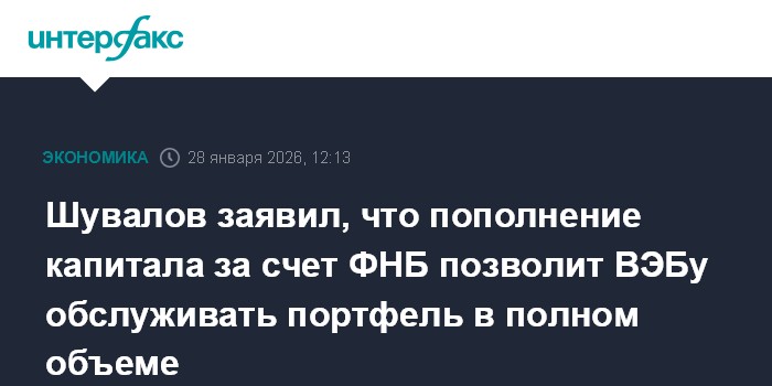 "Закончили 2025 год с объёмом капитала 1,5 трлн рублей и с бизнесом почти 10 трлн. Достаточность капитала на 1 января 2026 года составляет 16%. Действительно, правительство приняло решение о пополнении нашего капитала за счёт средств ФНБ. Это позволит нам существующий портфель обслуживать в полном объёме", - рассказал Шувалов.