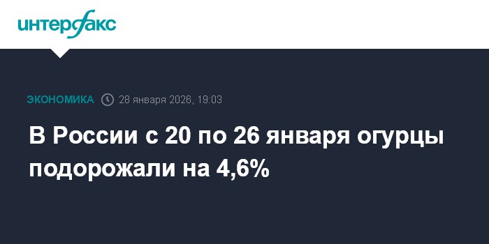 В России с 20 по 26 января огурцы подорожали на 4,6%