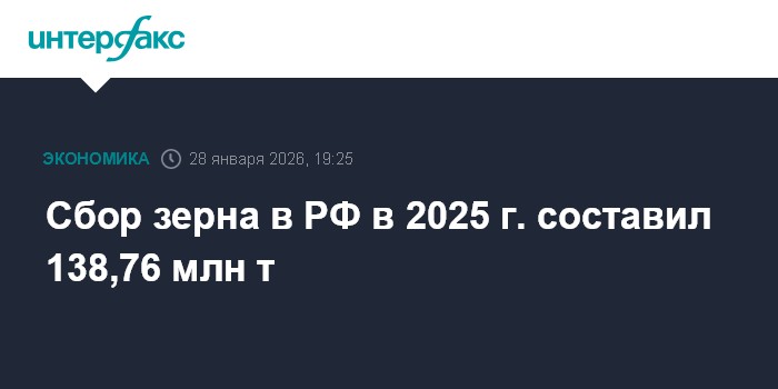 Сбор зерна в РФ в 2025 г. составил 138,76 млн т