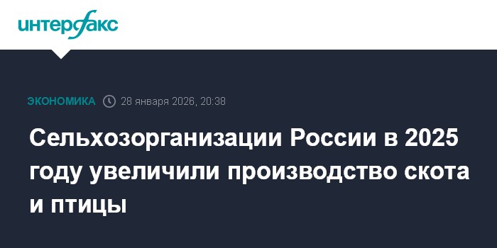 Москва. 28 января. INTERFAX.RU - Производство скота и птицы в российских сельхозорганизациях в 2025 году составило 13,9 млн тонн (в живом весе, на убой), что на 1% больше, чем годом ранее (13,7 млн тонн), говорится в материалах Росстата.