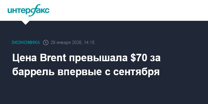 Москва. 29 января. INTERFAX.RU - Котировки нефти ускорили рост днем в четверг, в ходе сессии цена Brent превышала $70 за баррель впервые с прошлого сентября.