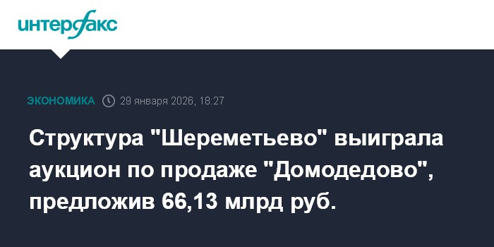 Структура "Шереметьево" выиграла аукцион по продаже "Домодедово", предложив 66,13 млрд руб.