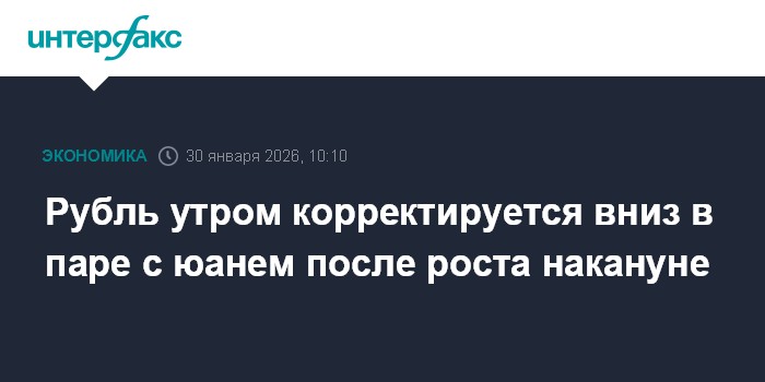 Москва. 30 января. INTERFAX.RU - Китайский юань растет на Московской бирже при открытии торгов в пятницу, рубль корректируется вниз после сильного повышения по итогам предыдущих торгов и на фоне активно дешевеющей нефти.