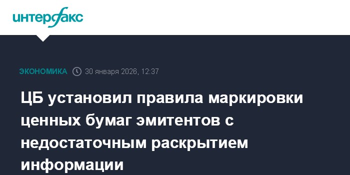 ЦБ установил правила маркировки ценных бумаг эмитентов с недостаточным раскрытием информации