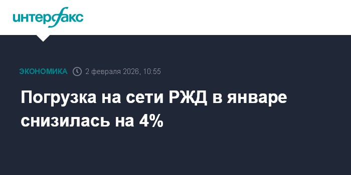 Москва. 2 февраля. INTERFAX.RU - Погрузка на сети ОАО "Российские железные дороги" в январе 2026 г. составила 89,3 млн тонн, что на 4% меньше, чем за аналогичный период прошлого года, сообщила компания.
