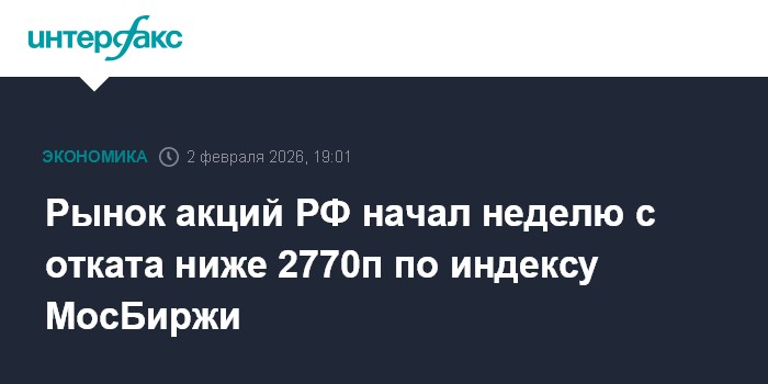 Рынок акций РФ начал неделю с отката ниже 2770п по индексу МосБиржи