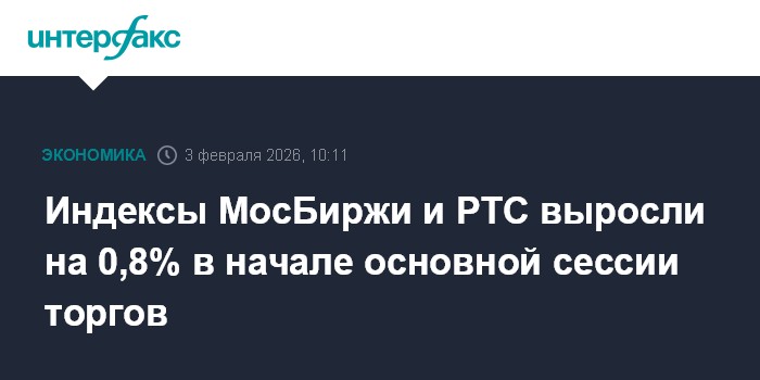 Индексы МосБиржи и РТС выросли на 0,8% в начале основной сессии торгов