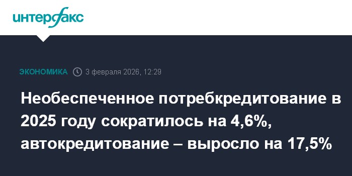 Необеспеченное потребкредитование в 2025 году сократилось на 4,6%, автокредитование – выросло на 17,5%