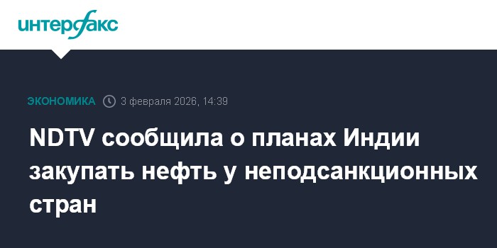 Москва. 3 февраля. INTERFAX.RU - Индия собирается приобретать нефть, исходя из расценок, по всему миру у стран, против которых не действуют санкции, сообщила телекомпания NDTV со ссылкой на источники в индийском правительстве