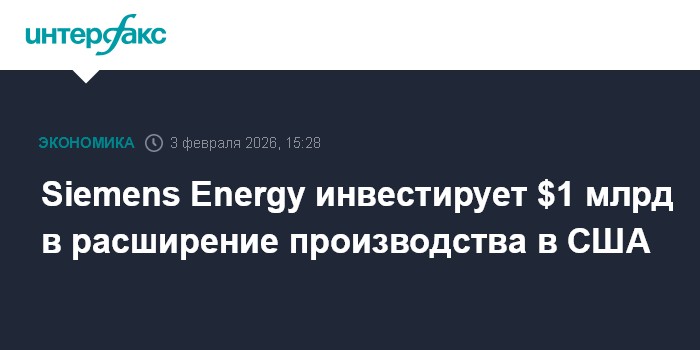 Москва. 3 февраля. INTERFAX.RU - Германский производитель оборудования для энергетики Siemens Energy намерен инвестировать $1 млрд в расширение операций по выпуску оборудования для электросетевой инфраструктуры и газовых турбин в США.