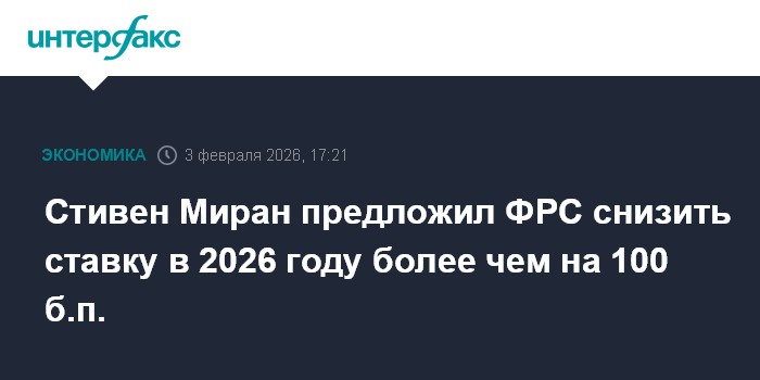 Стивен Миран предложил ФРС снизить ставку в 2026 году более чем на 100 б.п.