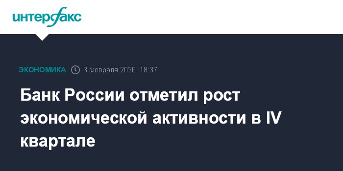 Москва. 3 февраля. INTERFAX.RU - Экономическая активность в России в IV квартале 2025 года, по предварительным данным, "довольно заметно" выросла к предыдущему кварталу на фоне высокого потребительского спроса и увеличения выпуска в базовых отраслях, говорится в бюллетене "О чем говорят тренды" департамента исследований и прогнозирования Банка России.