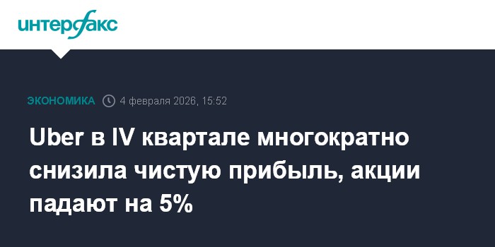Москва. 4 февраля. INTERFAX.RU - Американская Uber Technologies, предоставляющая услуги заказа такси и доставки еды, в четвертом квартале 2025 года многократно снизила чистую прибыль из-за переоценки инвестиций, при этом скорректированный показатель не оправдал ожиданий рынка, а выручка - превзошла.