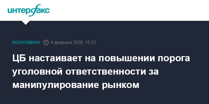 Москва. 4 февраля. INTERFAX.RU - ЦБ настаивает на увеличении порога уголовной ответственности за неправомерное использование инсайдерской информации и манипулирование рынком, сообщил "Интерфаксу" источник, знакомый с позицией регулятора.