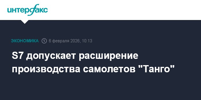Москва. 6 февраля. INTERFAX.RU - Группа S7, в планах которой запуск серийного производства учебно-тренировочных самолетов "Танго" на технической базе в подмосковном Торбееве, в будущем может открыть еще одну площадку под проект в Сибири, сообщил журналистам на форуме НАИС-2026 основатель и акционер S7 Владислав Филев.