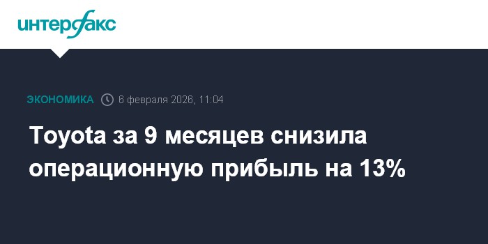 Москва. 6 февраля. INTERFAX.RU - Японский автопроизводитель Toyota Motor Corp. за девять месяцев 2026 финансового года снизил операционную прибыль на 13,1%, что не помешало компании улучшить годовой прогноз.