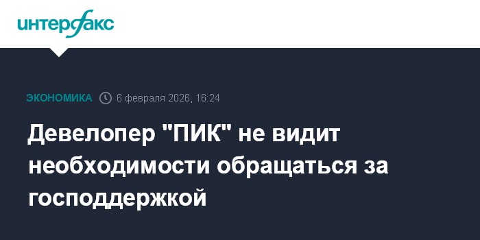 Москва. 6 февраля. INTERFAX.RU - Девелопер "ПИК" не видит для себя необходимости обращаться за господдержкой.