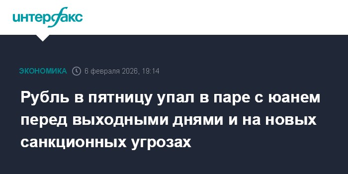 Рубль в пятницу упал в паре с юанем перед выходными днями и на новых санкционных угрозах