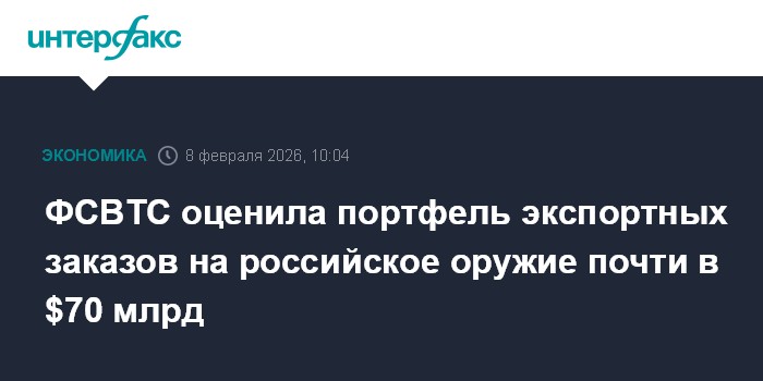 "Текущий портфель заказов действительно составляет порядка 70 млрд долларов США", - заявили в ФСВТС в связи с открывающейся в воскресенье в Эр-Рияде выставкой World Defense Show-2026.