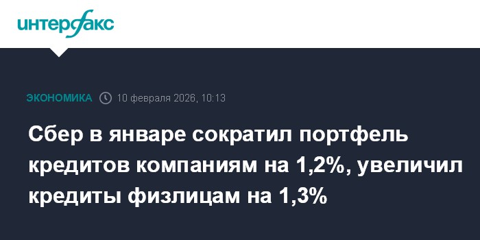 Сбер в январе сократил портфель кредитов компаниям на 1,2%, увеличил кредиты физлицам на 1,3%