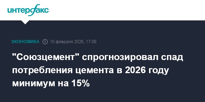 "По итогам 2025 года мы наблюдаем спад (в потреблении цемента в России - ИФ) на 9% по сравнению с 2024 годом, когда показатель составлял 67 млн тонн. Прогноз Союза на 2026 год - это дальнейший спад не менее, чем на 15%", - отметила Мартынкина.