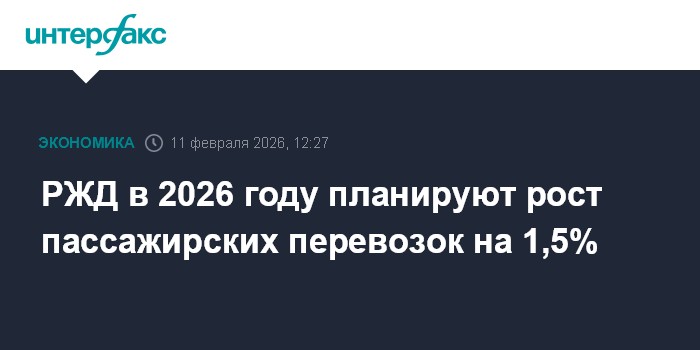 Москва. 11 февраля. INTERFAX.RU - ОАО "Российские железные дороги" в 2026 году планирует рост пассажирских перевозок на 1,5% к уровню 2025 года. Об этом заявил глава компании Олег Белозеров в ходе итогового заседания правления РЖД в среду.