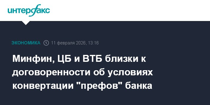 Минфин, ЦБ и ВТБ близки к договоренности об условиях конвертации "префов" банка