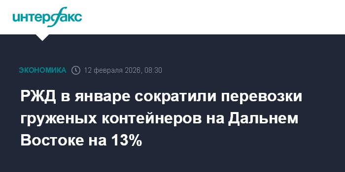 Москва. 12 февраля. INTERFAX.RU - Дальневосточная железная дорога (ДВЖД, филиал ОАО "РЖД") в январе 2026 года сократила перевозки контейнеров во всех видах сообщения на 11% к уровню января 2025 года - до 110,9 млн TEU, говорится в сообщении филиала.