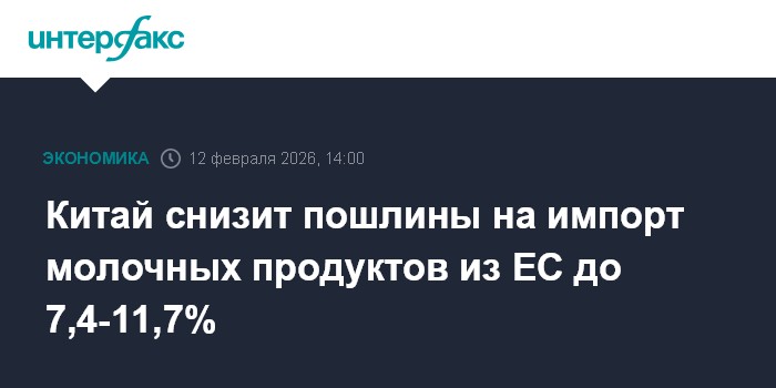 Москва. 12 февраля. INTERFAX.RU - Китай существенно смягчил позицию по пошлинам на импорт молочных продуктов из Евросоюза в окончательном решении, вынесенном после полуторагодовой проверки.