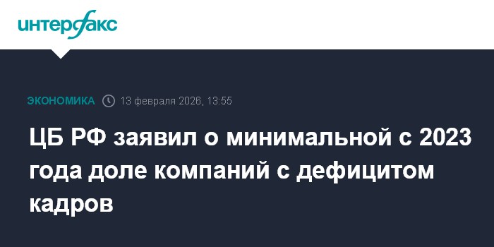 ЦБ РФ заявил о минимальной с 2023 года доле компаний с дефицитом кадров