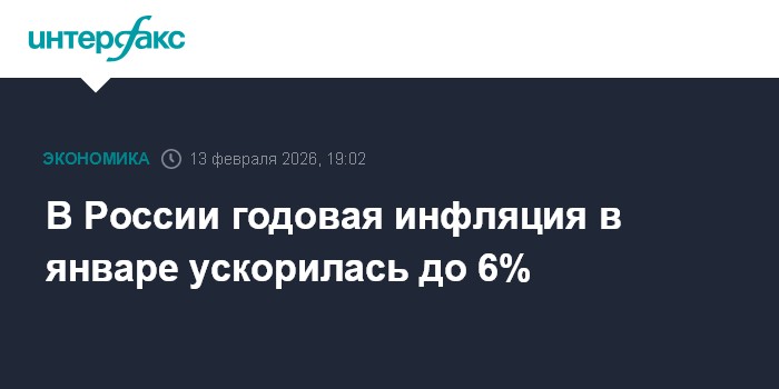 Годовая инфляция, по данным Росстата, в январе 2026 года ускорилась до 6% (аналитики ожидали 6,35%) с 5,59% на конец декабря 2025 года.