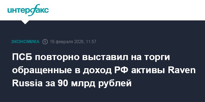Москва. 16 февраля. INTERFAX.RU - ПСБ второй раз выставил на аукцион обращенные в доход России активы ГК Raven Russia (Великобритания), крупного владельца складской недвижимости, говорится в документах торговой площадки ГИС "Торги".