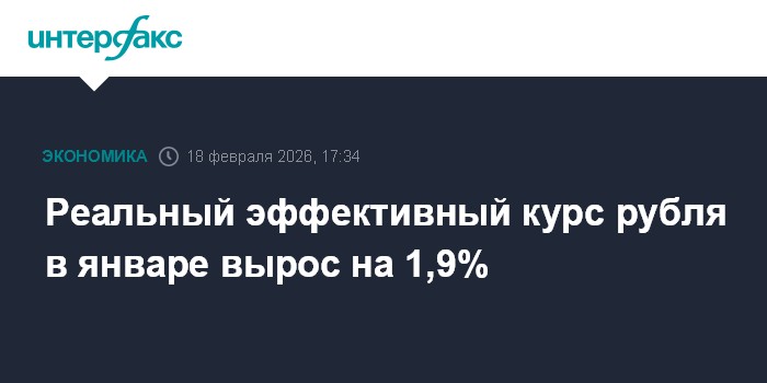Москва. 18 февраля. INTERFAX.RU - Реальный эффективный курс рубля к корзине валют государств - основных торговых партнеров России в январе 2026 года вырос на 1,9% по отношению к декабрю 2025 года, согласно предварительной оценке ЦБ РФ, опубликованной на его сайте.