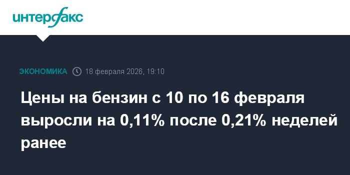 Цены на бензин с 10 по 16 февраля выросли на 0,11% после 0,21% неделей ранее