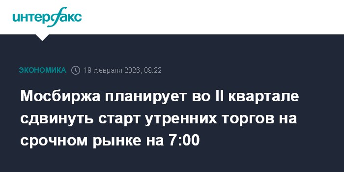 Москва. 19 февраля. INTERFAX.RU - "Московская биржа" планирует во втором квартале 2026 года синхронизировать начало утренней сессии на фондовом и срочном рынках, сообщила "Интерфаксу" управляющий директор рынка деривативов биржи Мария Патрикеева.