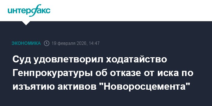 Суд удовлетворил ходатайство Генпрокуратуры об отказе от иска по изъятию активов "Новоросцемента"
