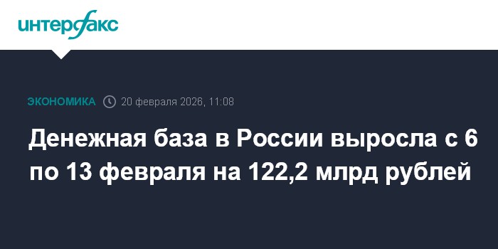 Денежная база в России выросла с 6 по 13 февраля на 122,2 млрд рублей