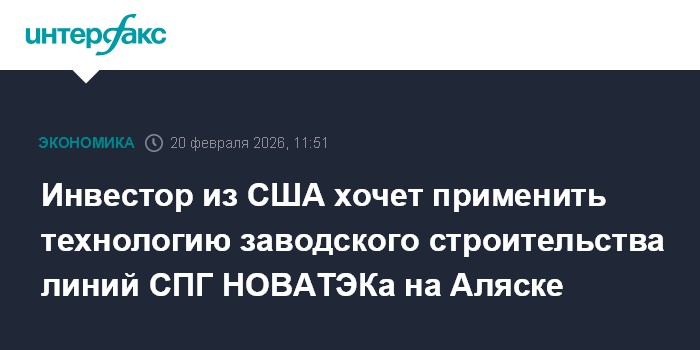 Москва. 20 февраля. INTERFAX.RU - Американский инвестор Джентри Бич (Gentry Beach) осенью 2025 года подписал соглашение с компанией "НОВАТЭК" о разработке месторождения природного газа на Аляске, сообщает газета The New York Times со ссылкой на интервью бизнесмена.