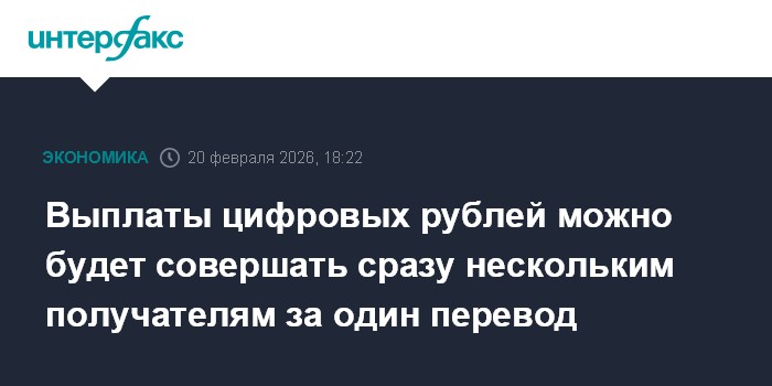 Москва. 20 февраля. INTERFAX.RU - Выплаты цифровых рублей можно будет совершать по реестрам - одномоментно зачислять средства сразу большому количеству получателей за один перевод, говорится в сообщении ЦБ РФ.